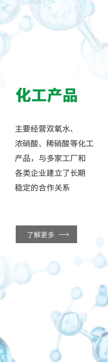 - 安徽安德諾化工產(chǎn)品銷(xiāo)售有限公司:位于合肥市蜀山區(qū),交通便利,主要經(jīng)營(yíng)雙氧水(27.5%、35%、50%)、濃硝酸(98%)、稀硝酸(40%~68%)等化工產(chǎn)品,與多家工廠和各類企業(yè)建立了長(zhǎng)期穩(wěn)定的合作關(guān)系。公司產(chǎn)品齊全,實(shí)力雄厚,重信用、守...